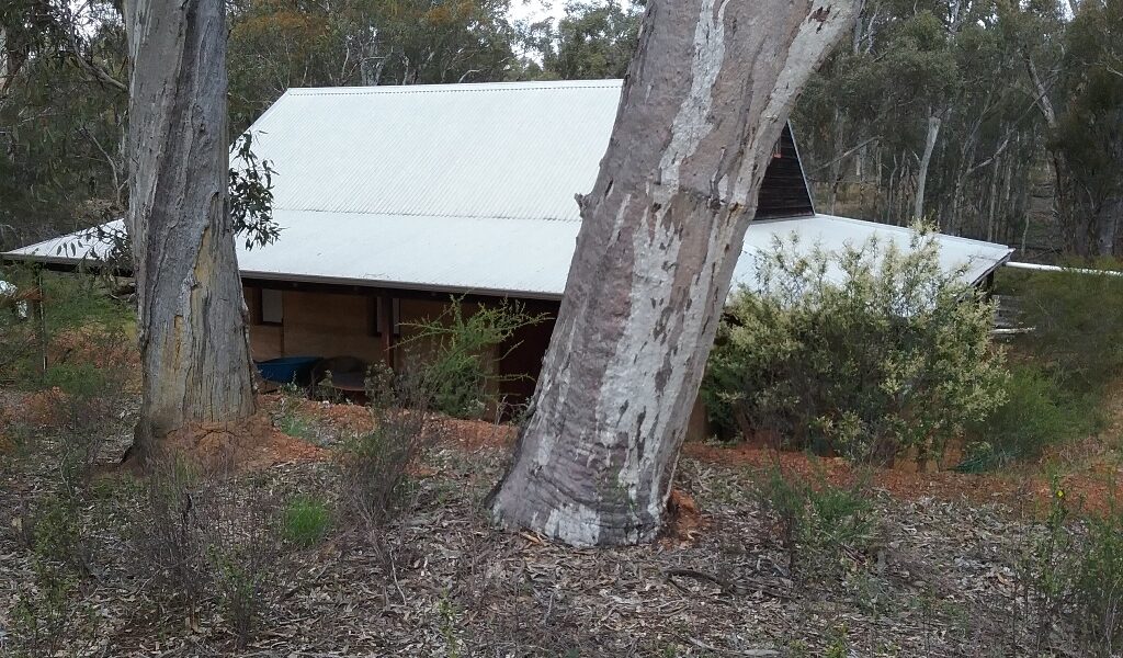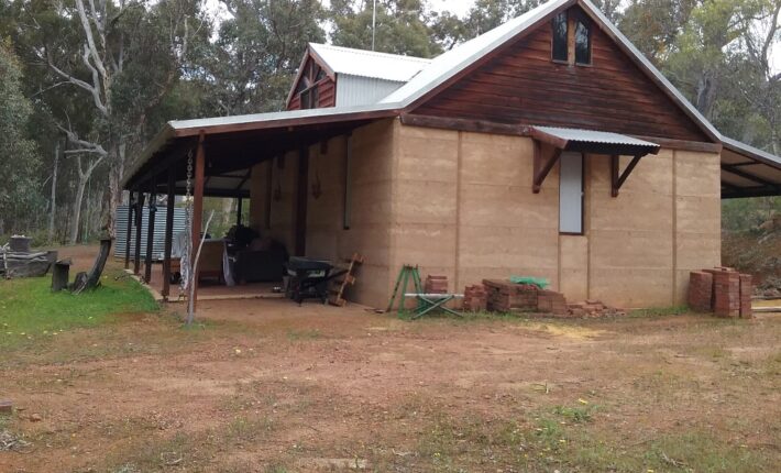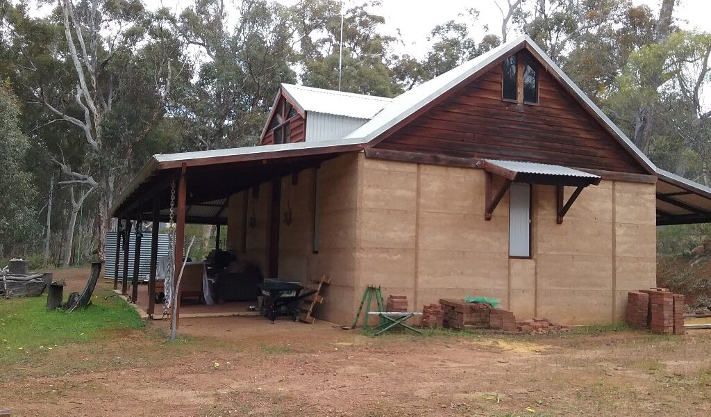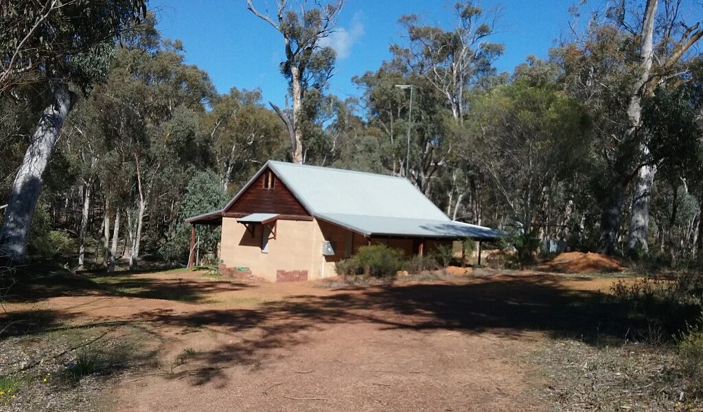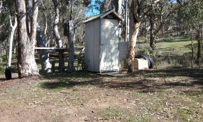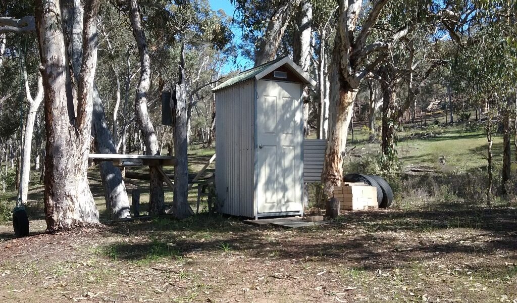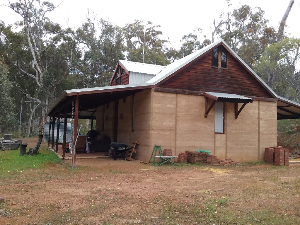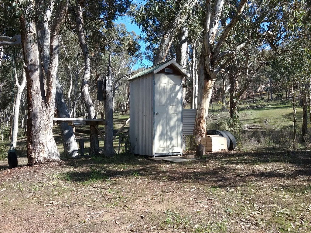 There is a rammed earth shack, just right for getting out of the weather, with an outdoor, upmarket composting toilet for weekend comfort & power is connected.