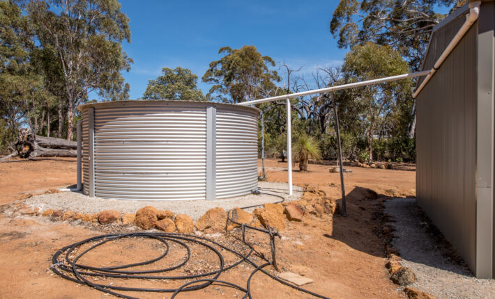 There is a rainwater tank and a garden shed also with a rain water tank connected. Power is at the roadside.
