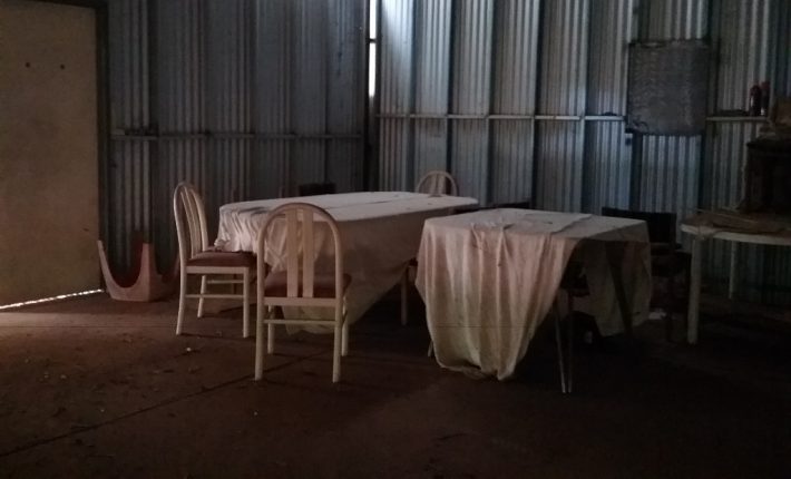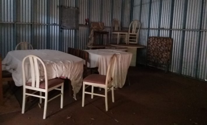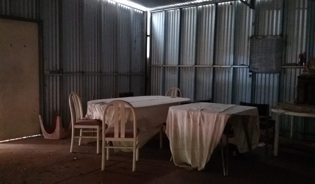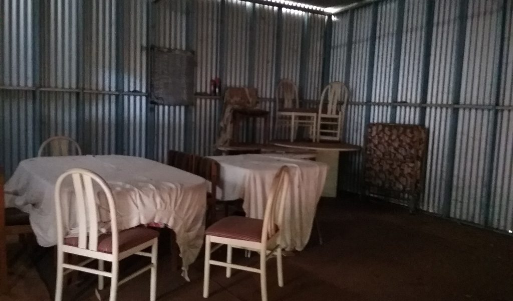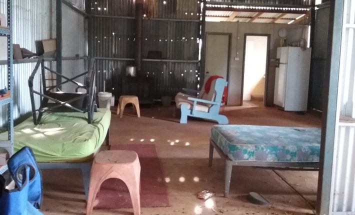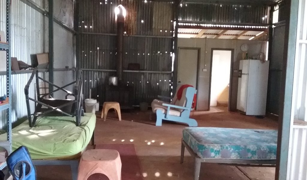 12m x 6m each with concrete floor and some basic amenities. There is a shower, toilet and kitchen prep area with septics and a wood fire for warmth. There is a lean-to joining the two.