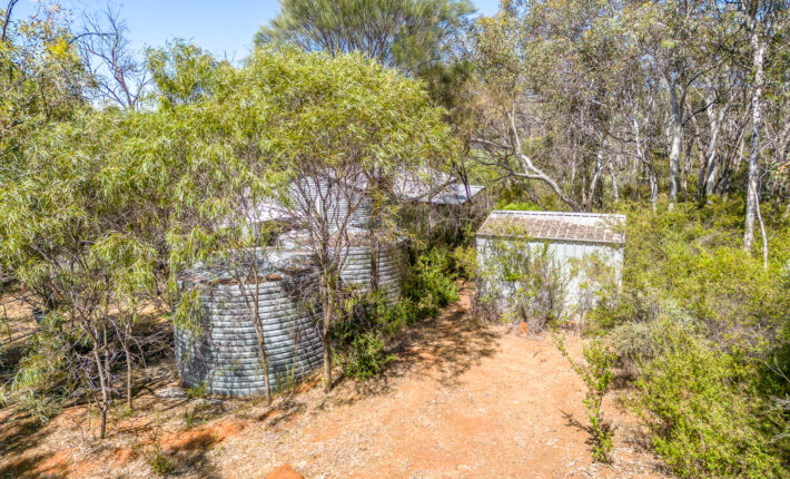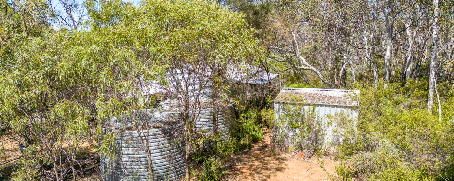 The 12m x 6m steel frame shed has power and a concrete floor. There are some comforts inside for an overnight stay and there are 2 x tanks to supply fresh rain water.