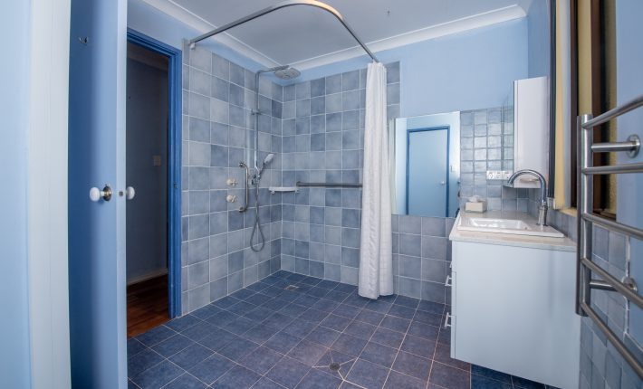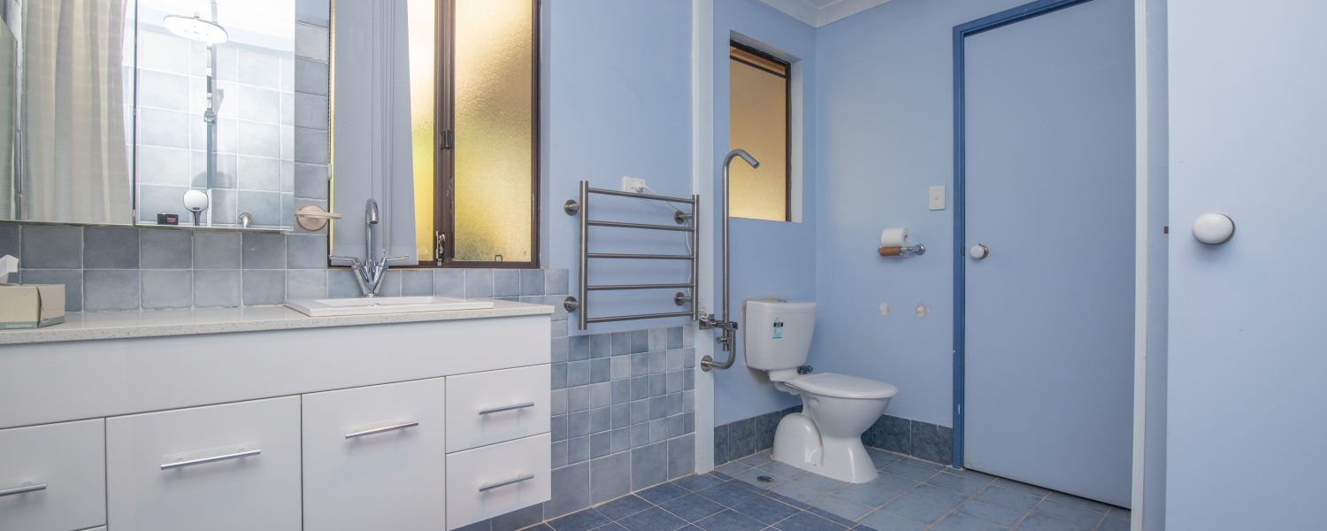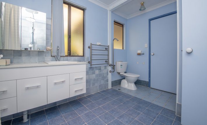 The bathroom has a bath, separate shower and vanity. The tiled laundry has outside access and separate toilet.