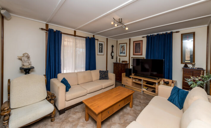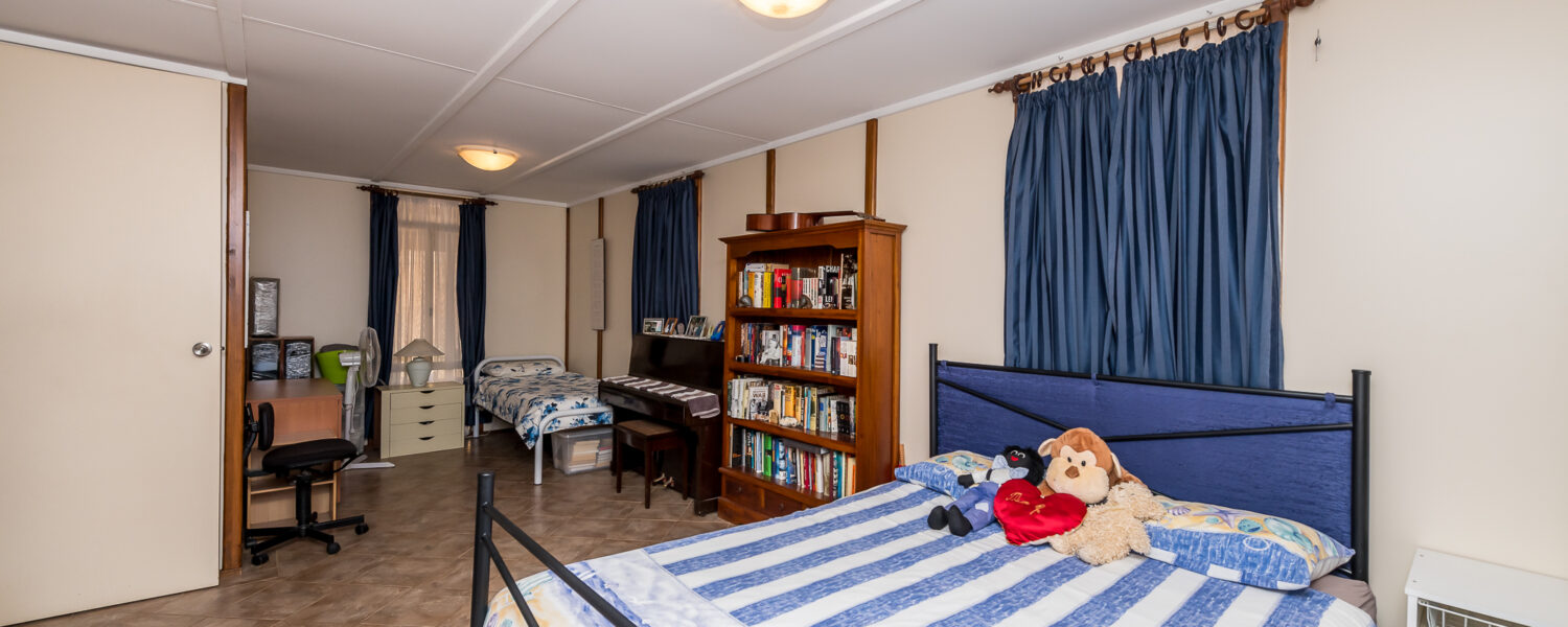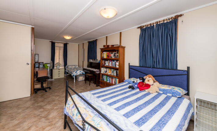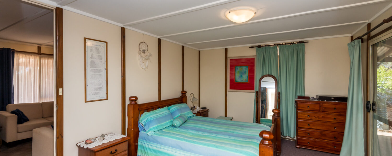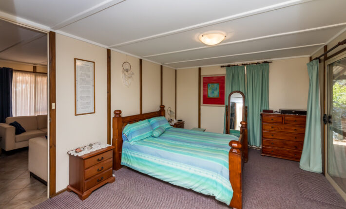 At one end of the house is the master bedroom with walk-in-robe and ensuite bathroom. Attached is a quiet sitting area.