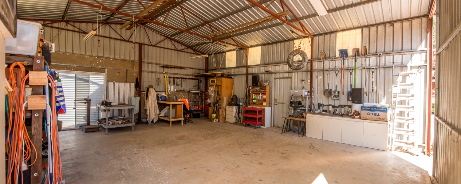 There is a four car powered garage with concrete floor and lean-to with an office. There are two storage sheds, garden sheds and a brew room. The property is boundary fenced plus two paddocks.