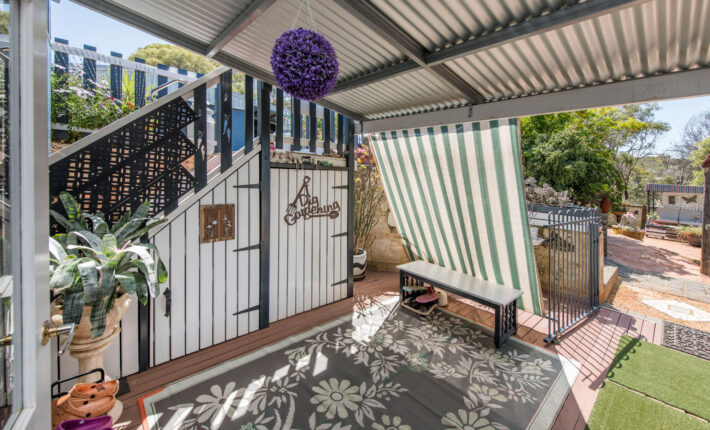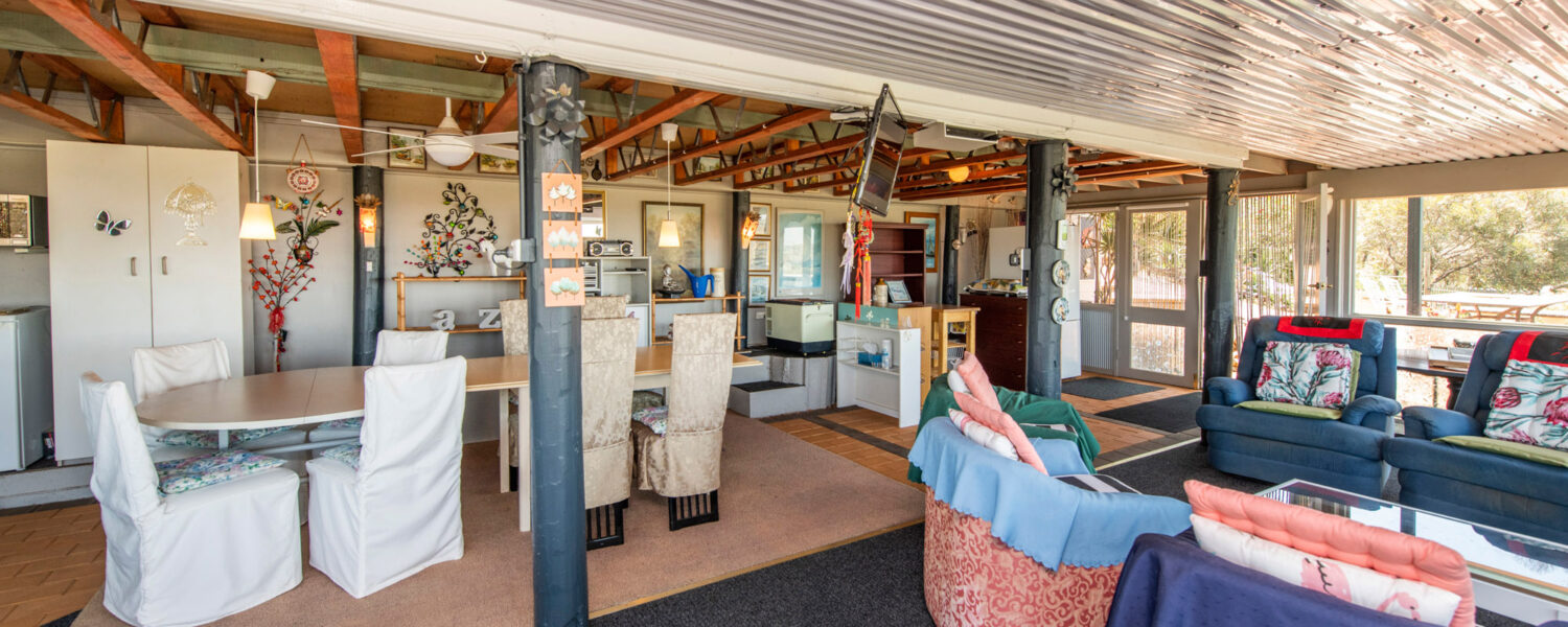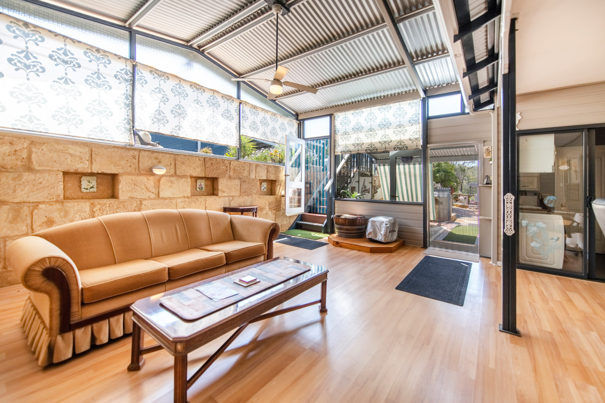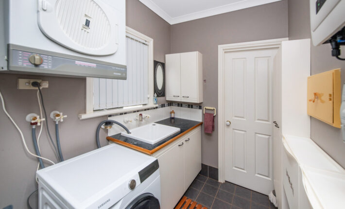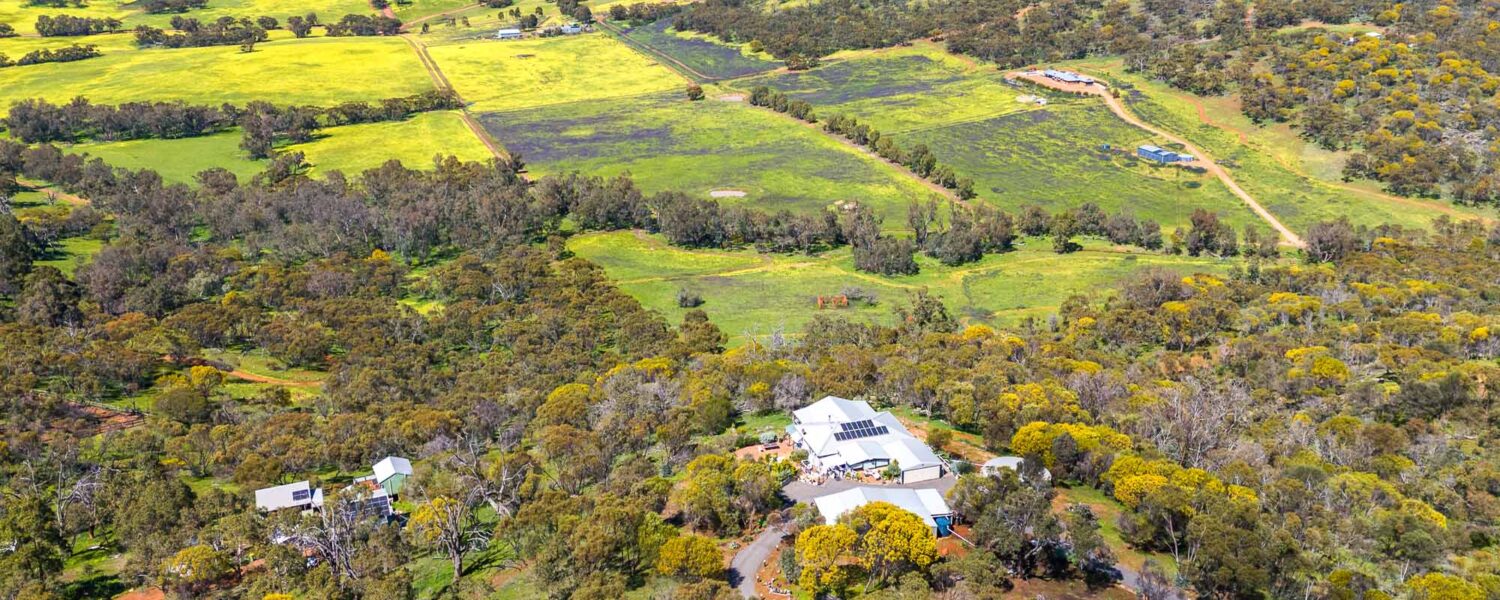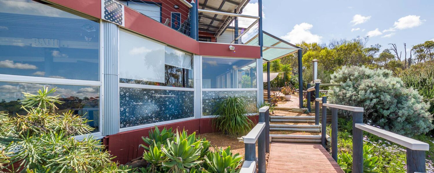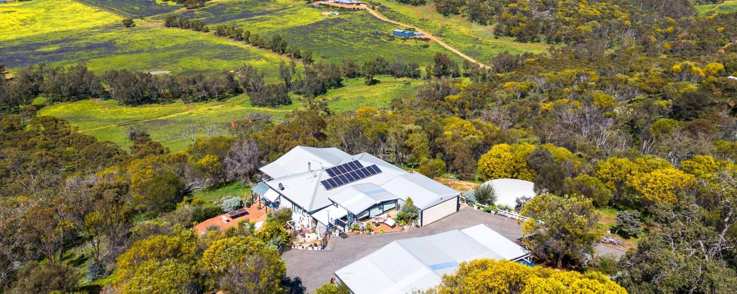 This distinctive home is set on 5 acres of natural bushland overlooking farmland and the hills beyond. Everything about this exclusive 3×2 has relaxation and enjoyment in mind. The sunroom is so warm and cosy in the wintertime, with ceiling fan, and laundry and toilet leading off. Enter the main dwelling and the open plan living draws in the expansive scenery through the wall of glass and onto the relaxing deck for those afternoon sundowners.