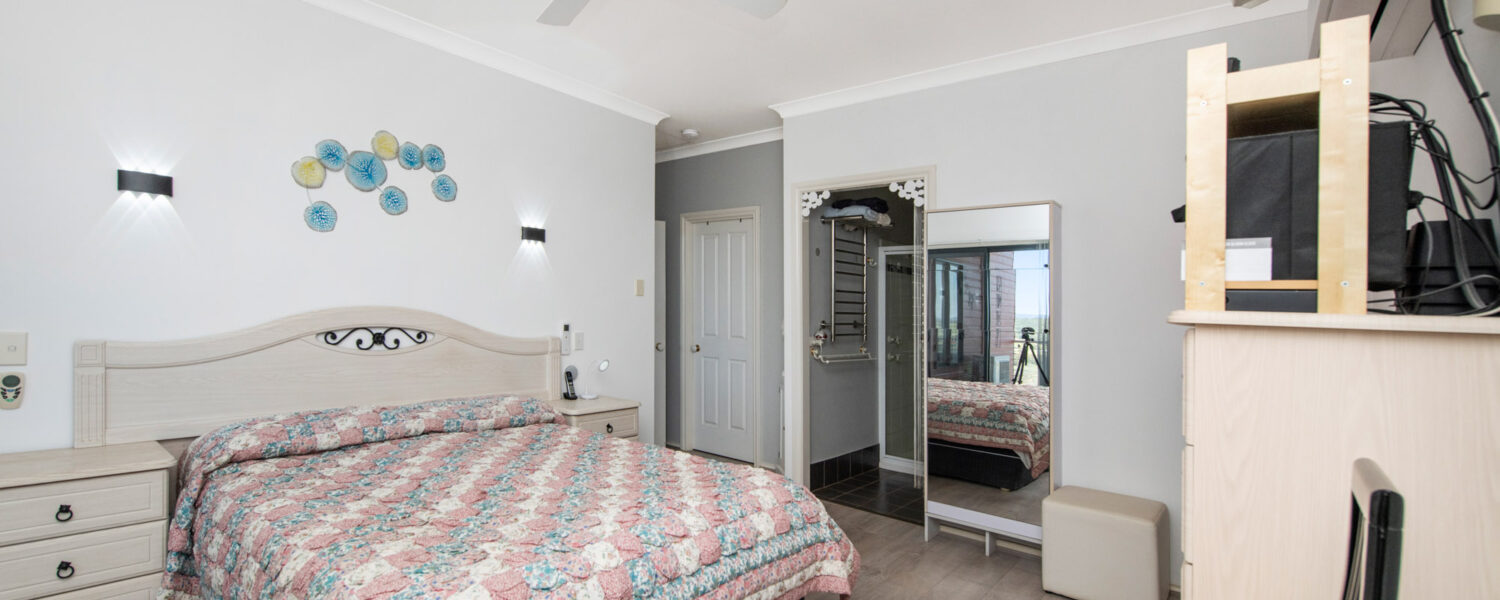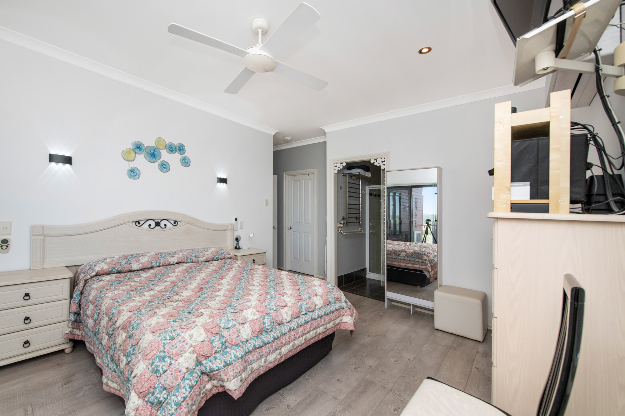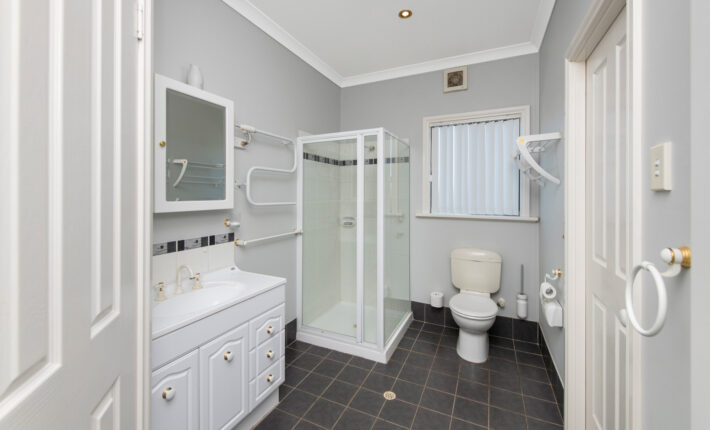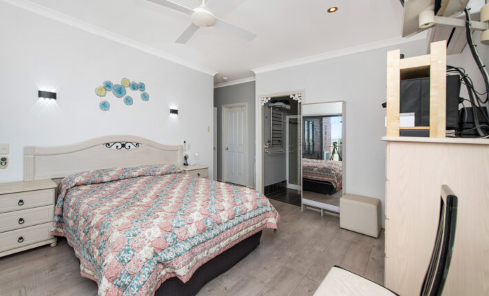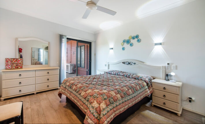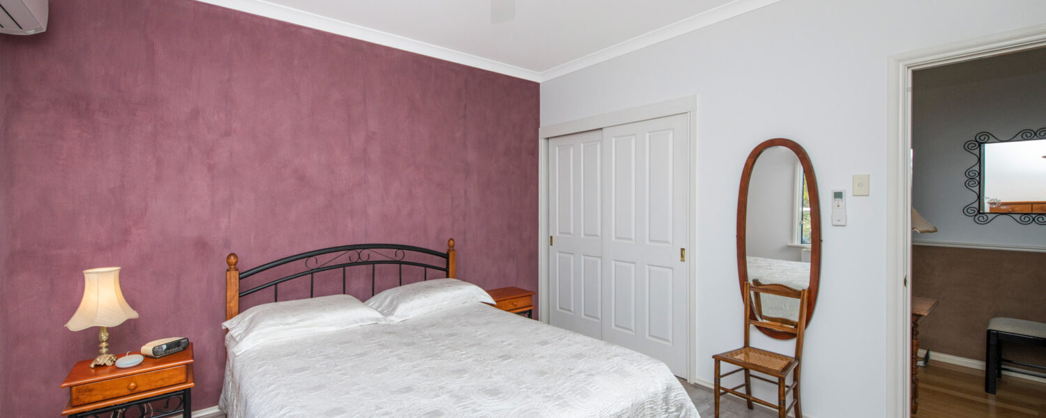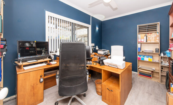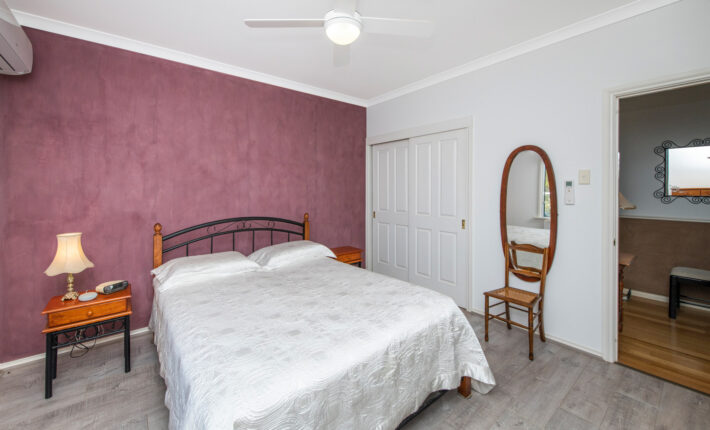 One of the queen size bedrooms has walk-in-robe and semi-ensuite. Another has double entry doors and is currently used as a study. The king size master has reverse cycle aircon, private balcony, walk-in-robe and ensuite.