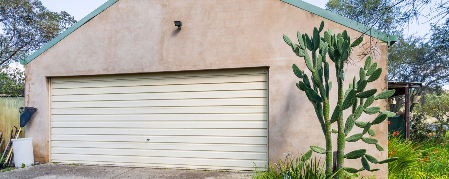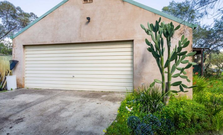 The double garage, with tilt-a-door, also has some basic amenities and a rain water tank.