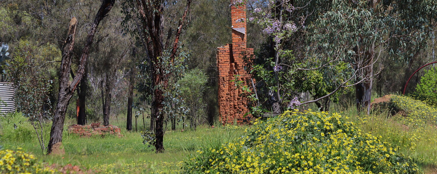 The house is surrounded by colourful gardens and a multitude of fruit trees.