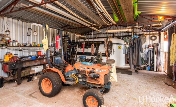 3 bay lock up shed / workshop with facilities, plus lovely established gardens and paddocks that are ideal for small stock or Horses.