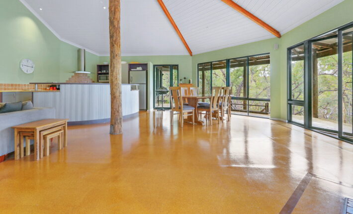 The home has been designed to bring the occupants close to nature without sacrificing all the modern conveniences such as the fully quipped kitchen with quality appliances including microwave and dishwasher. There’s also a reverse-cycle air conditioner and open fireplaces for year-round comfort.