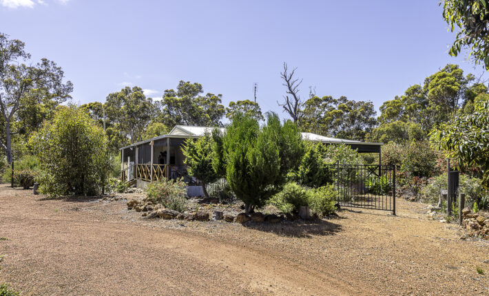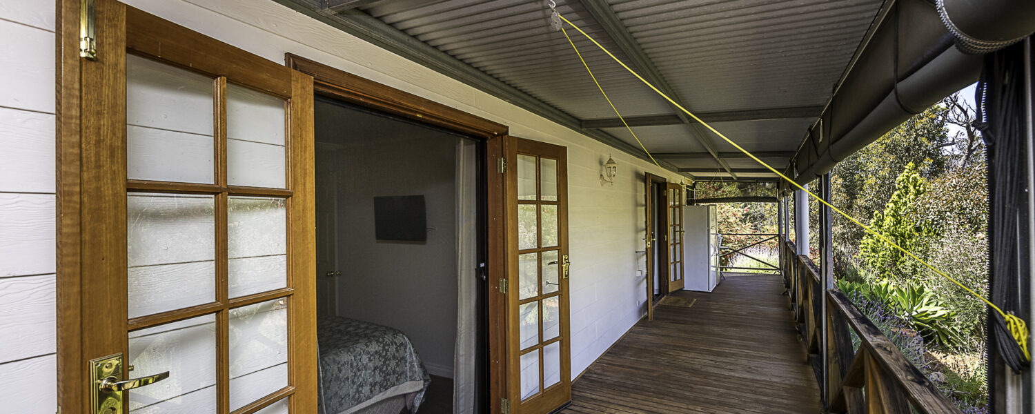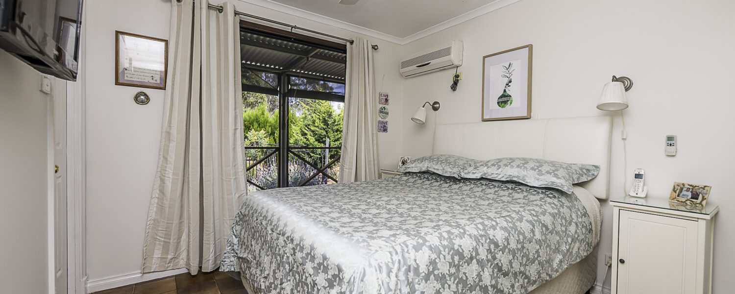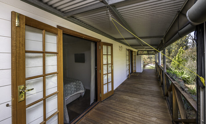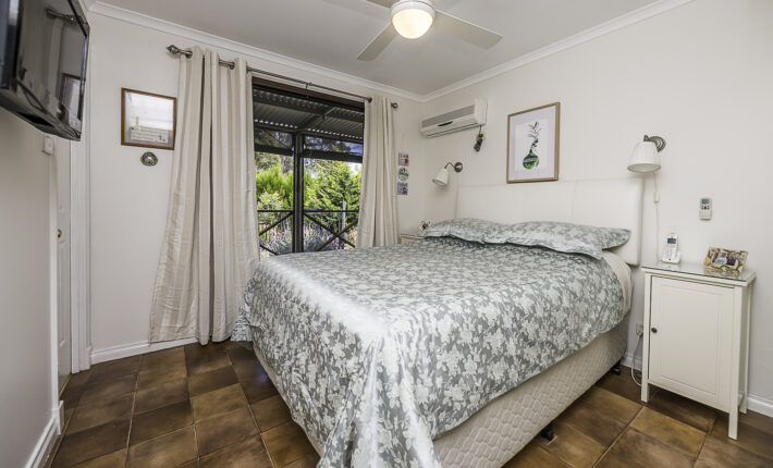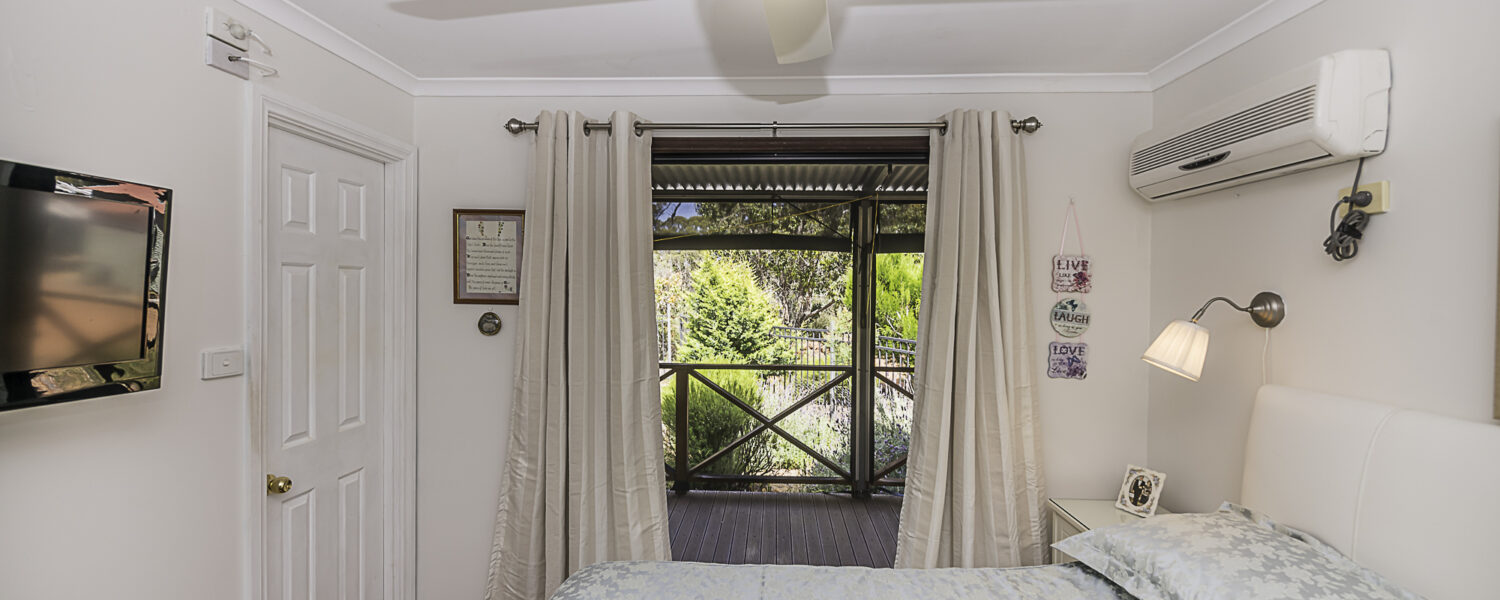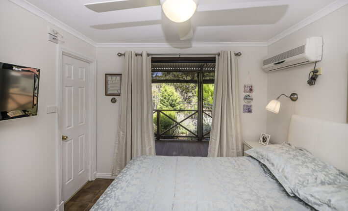 It starts at the property entrance, with sweeping gravel driveway and inviting parking area. The cottage entrance is through a very spacious covered patio with ceiling fan, log fire and split reverse cycle aircon. Walk up to the French doors to enter the open plan living, also with ceiling fan, log fire and aircon. The modern kitchen has a dishwasher, gas H/P and U/B electric oven. The double bedroom has built-in-robe as well as walk-in-robe, ceiling fan, aircon and access to the front deck with roll up blinds and which overlooks the colourful gardens. There is a single airconditioned bedroom with built-in-robe. The bathroom has a shower, toilet and vanity and there is a second toilet off the laundry. A bonus is the solar panels for cheaper power.