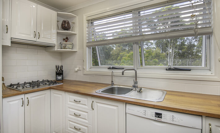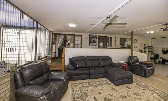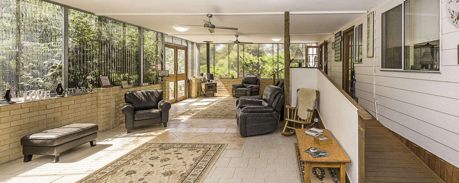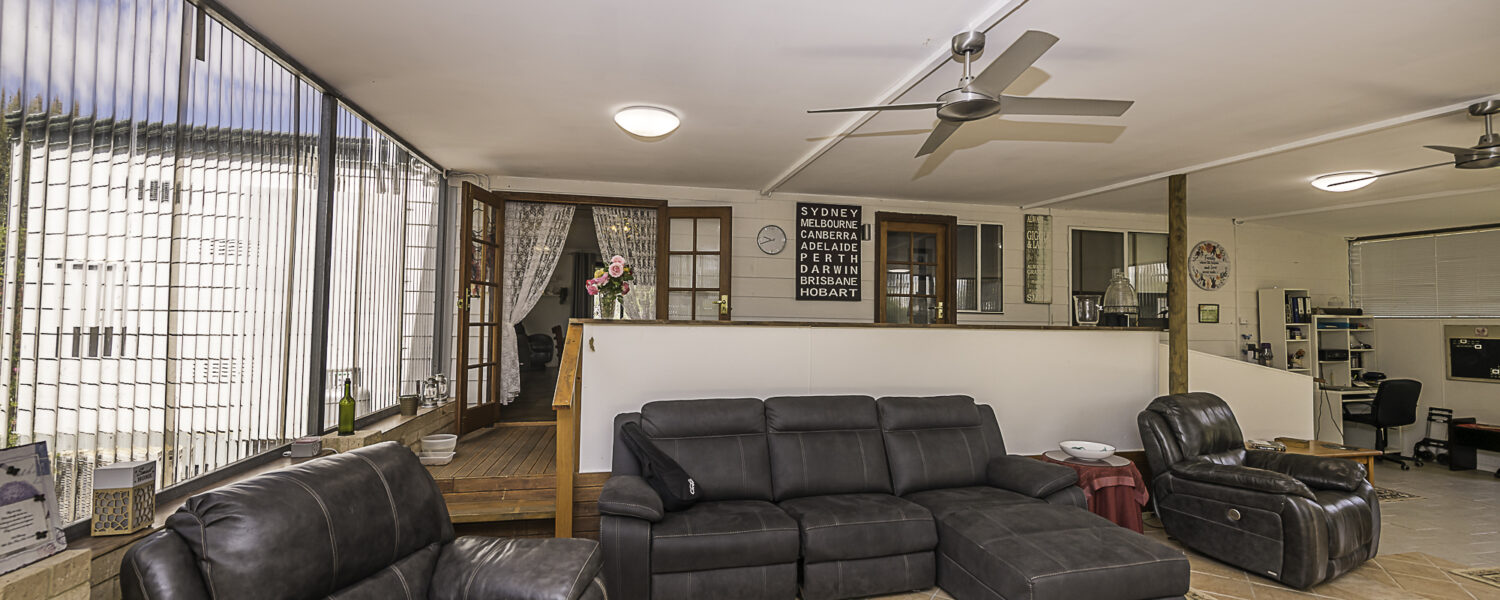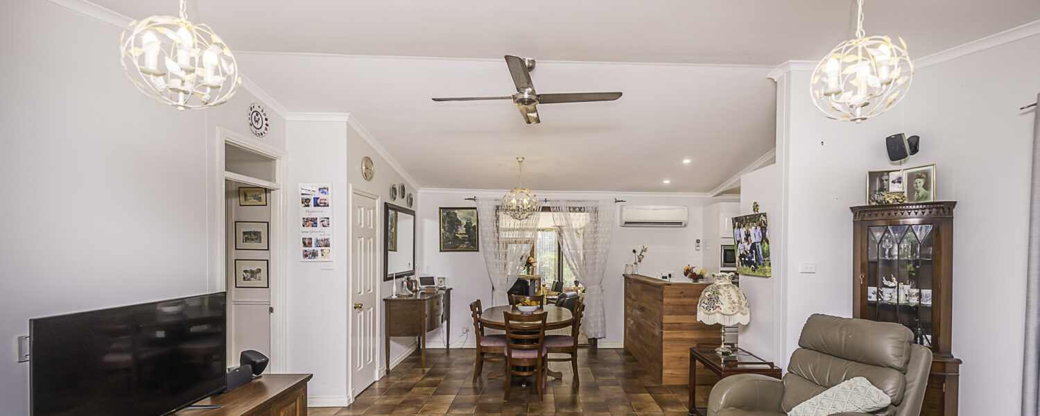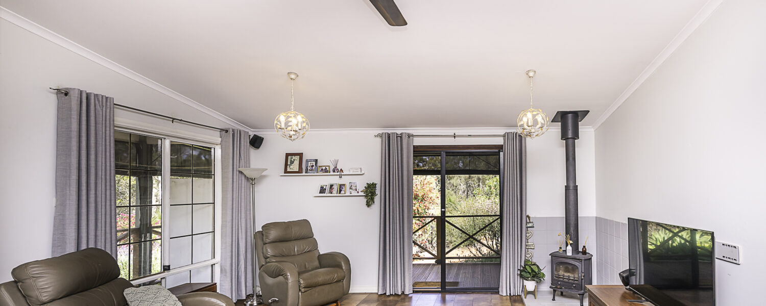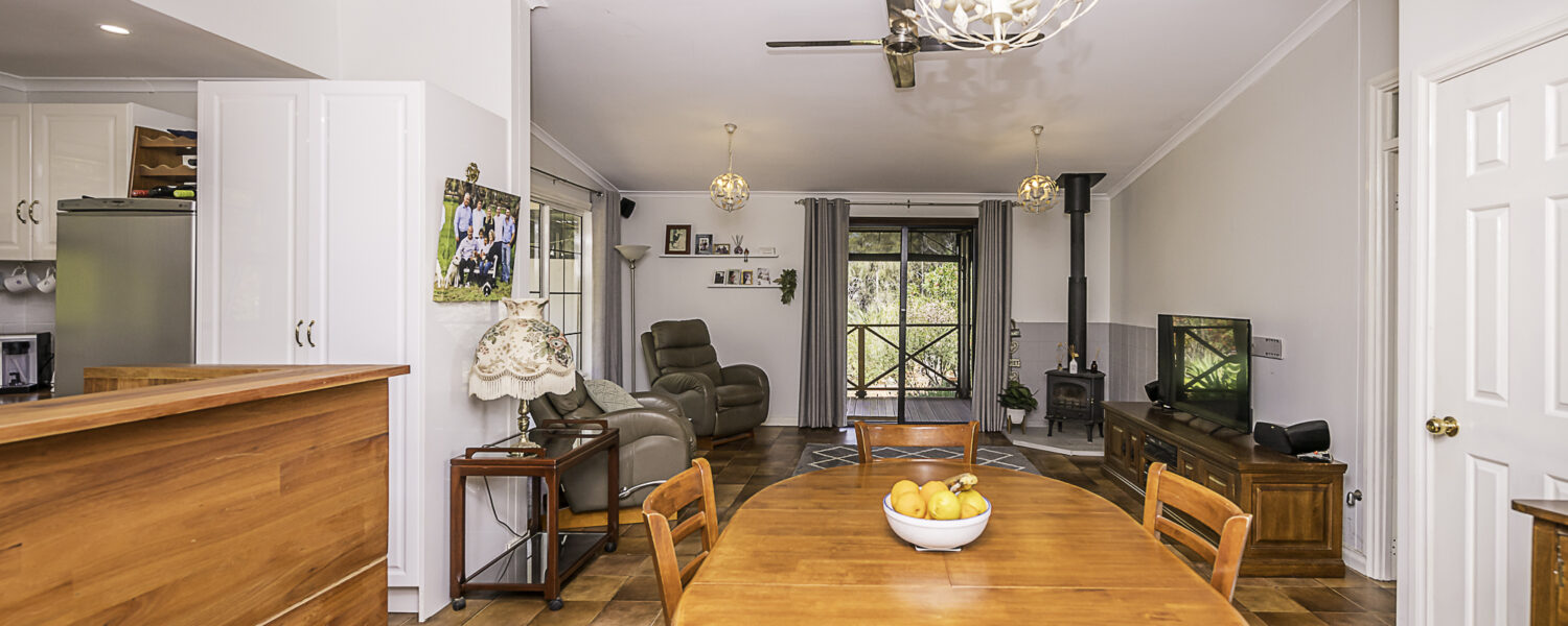 Outdoors is a 6m x 6m powered garage with concrete floor and remote door with lock up section, a caravan c/port, a powered workshop and various smaller sheds. There is a 105,000 litre rain water tank and 2 x 5,000 litre tanks, chook pen, fruit salad orchard and veggie patch.