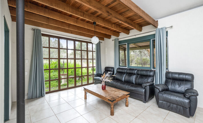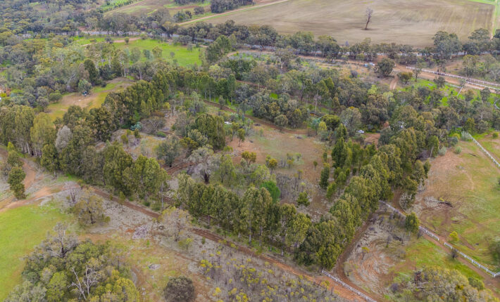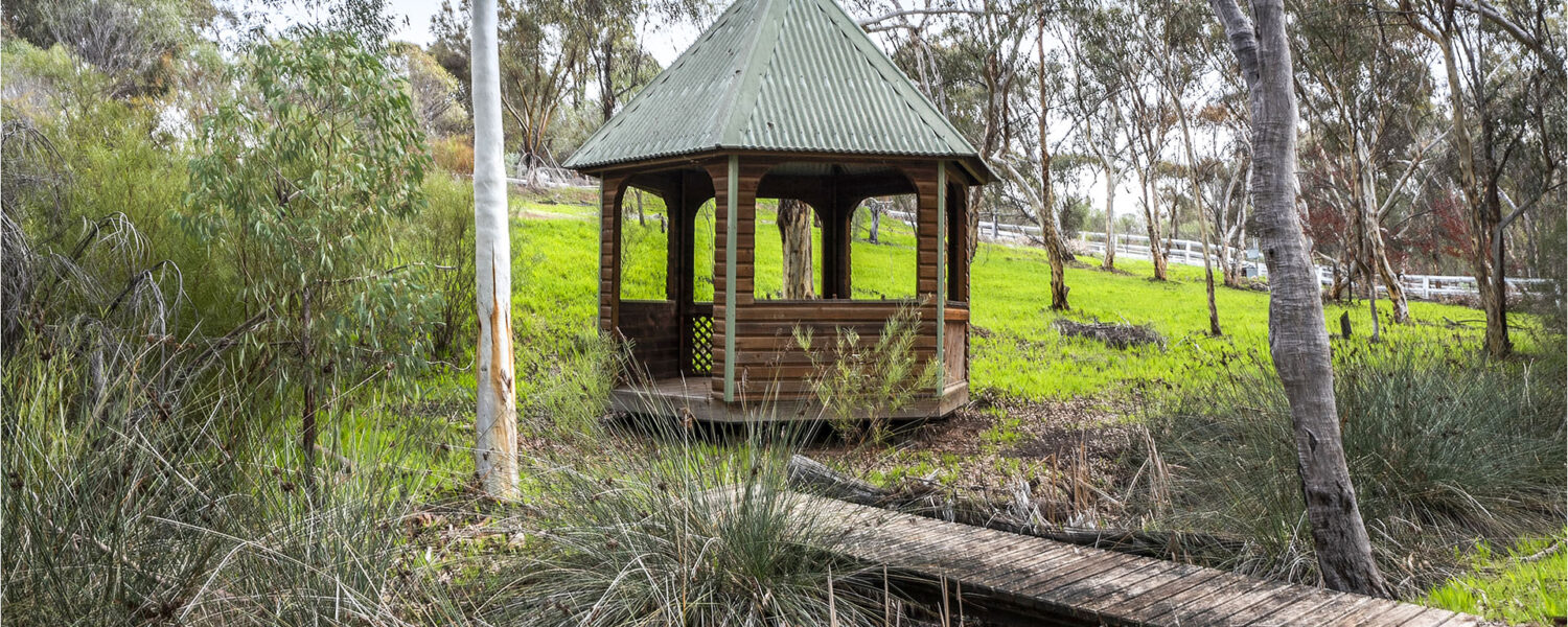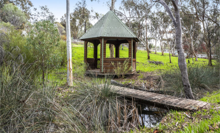 Walk the boundary of towering gums to the dam, admire the native and planted mature trees and open grasslands if you would like farm animals too.